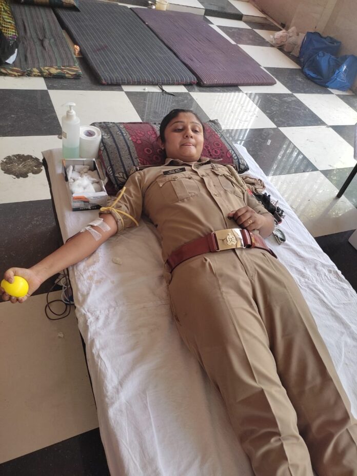 बरेली की महिला पुलिस कर्मी ने अलखनाथ मंन्दिर मे किया विश्व रक्तदान दिवस पर किया रक्तदान